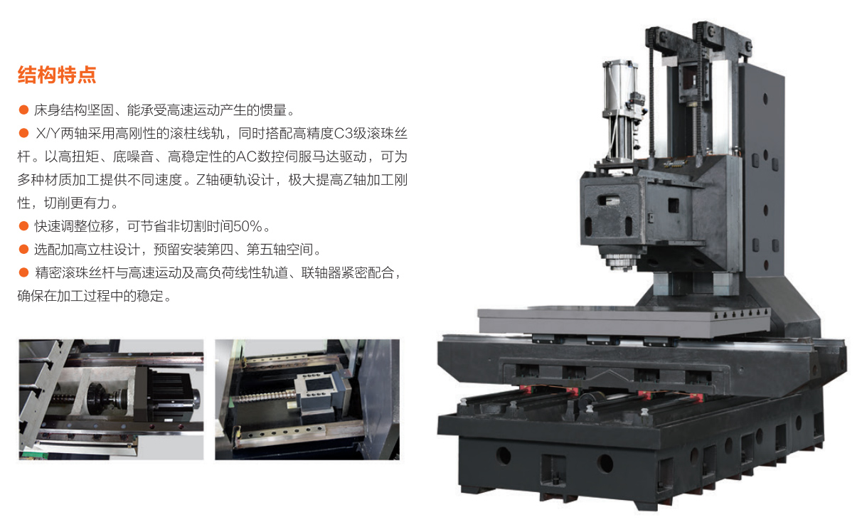 床身結(jié)構(gòu)堅(jiān)固、能承受高速運(yùn)動(dòng)產(chǎn)生的慣量。